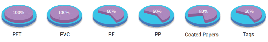 Alcohol resistance ≥30 times (500g weight, 95% ethyl alcohol, test on PET labels)